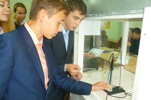 Урок химии в 9 классе. Преподаватель химии Сайфутдинов Александр Маратович и ученики на лабораторной работе проводят анализ воды на наличие солей 22.09.2016