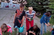 Волонтерский отряд «Пламя» в первые дни летних каникул проводит акцию «Обелиск». Высадили в клумбы цветы. Убрали территорию памятника. 06.06.2016