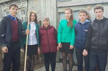 Волонтерский отряд «Пламя» устроил субботник около дома своей подшефной бабушки Комаровой М.С. 13.04.2016