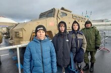 На парковке Центрального стадиона проходит передвижная выставка трофейной техники с полей СВО. Здесь ребята посмотрели на подбитые натовские танки, бронемашины и гранатометы.