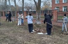 Учащиеся 2-11 классов, совместно с педагогами очистили территорию школы от сухой листвы и травы.