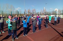 Сегодня активисты РДШ провели акцию "Здоровое утро с РДШ", организовали утреннюю зарядку для учащихся начальных классов
