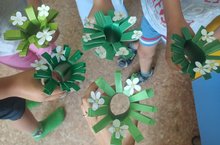 В детском саду "Ромашка" прошла "Цветочная неделя". Наши воспитанники узнали, что цветы бывают луговые, полевые и садовые, многолетние и однолетние. Наблюдали за цветами, изучали строение, составляли букеты, плели венки... Результатом стали коллективные работы, выполненные нетрадиционными техниками. "Цветочные поляны" украсили наше крыльцо!