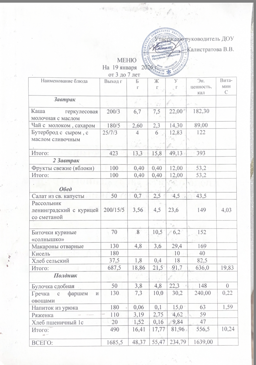 меню 19.01.2026
