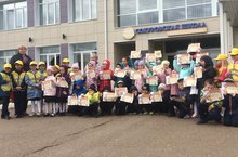 Отряд "ЮИД" (руководитель Гаврилова А. А) совместно с ведущим специалистом ГБУ "Безопасность дорожного движения"Зайнуллиной Г. Р провели акцию для первоклассников "Безопасная дорога".