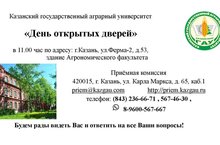 ФГБОУ ВО «Казанский государственный аграрный университет» информирует о том, что 14 марта 2020 года в 11.00 час по адресу: г.Казань, ул.Ферма-2, .53, здание Агрономического факультета состоится «День открытых дверей»...