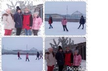 Учащиеся 7 класса во время зимних каникул время даром не теряют. Девчонки ежедневно приходят на каток, который располагается на территории школы, и катаются на коньках.