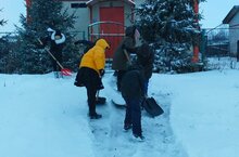 Помощь учащихся 6-7 классов в очистке дорожек от снега