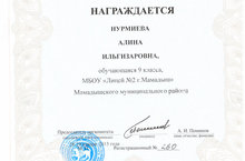 Почетная грамота Нурмиевой А.И. 31.01.2015