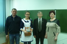 Сегодня лицей посетил писатель, журналист, секретарь союза писателей России Мансур Сафин. Он вручил премию лучшей ученице 9в класса Гафуровой Чулпан, достигшей отличных результатов в учебе, а также ставшей призером заключительного этапа Всероссийской олимпиады школьников по биологии.