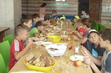 Каждое утро дети завтракают в ЛТО.