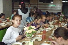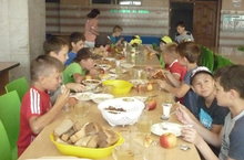 Завтрак детей в лагере ЛТО. 15.06.2015