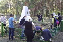 Учащиеся 8 Б класса, в рамках празднования Дня Победы провели очистку памятника "Героям Гражданской войны"