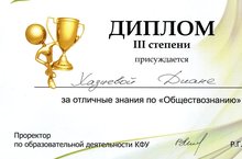 награждена дипломом 3 степени за отличные знания по "Обществознанию"