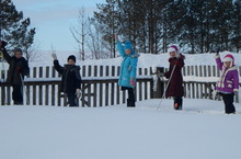 Бүген барчабыз да чаңгы шуарга җыелды. Чаңгы шуганнан соң пешекче апабыз безне коймак белән чәй эчәргә чакырды. Менә шулай күңелле итеп бәйрәм иттек!!!
