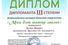 Всероссийский конкурс детского творчества "Мин бит татар малае" 23.04.2025