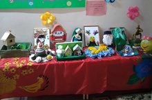 Ко международному Дню родного языка в холе нашего детского сада была оформлена выставка поделок "Сказки всех народов мира"