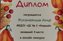 2 место в районном онлайн -конкурсе "Тыквенный бум" Мухаметшин Амир в номинации "SUPER LIKE" 10.11.2023
