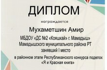 1 место в районном этапе Республиканского конкурса "Я и Красная книга" Мухаметшин Амир 13.11.2023