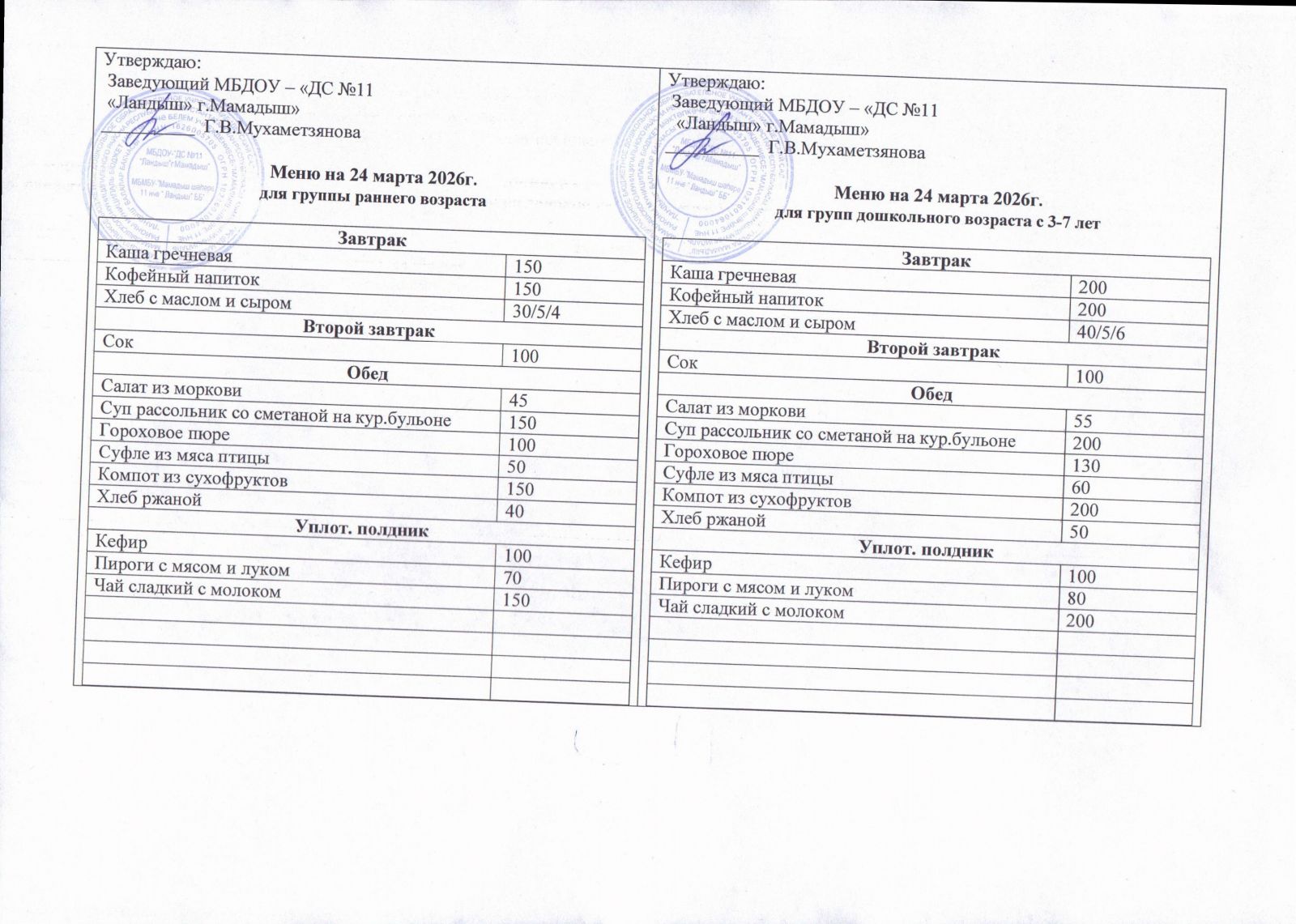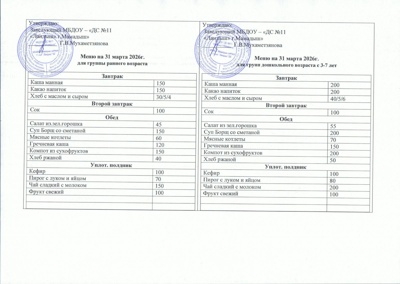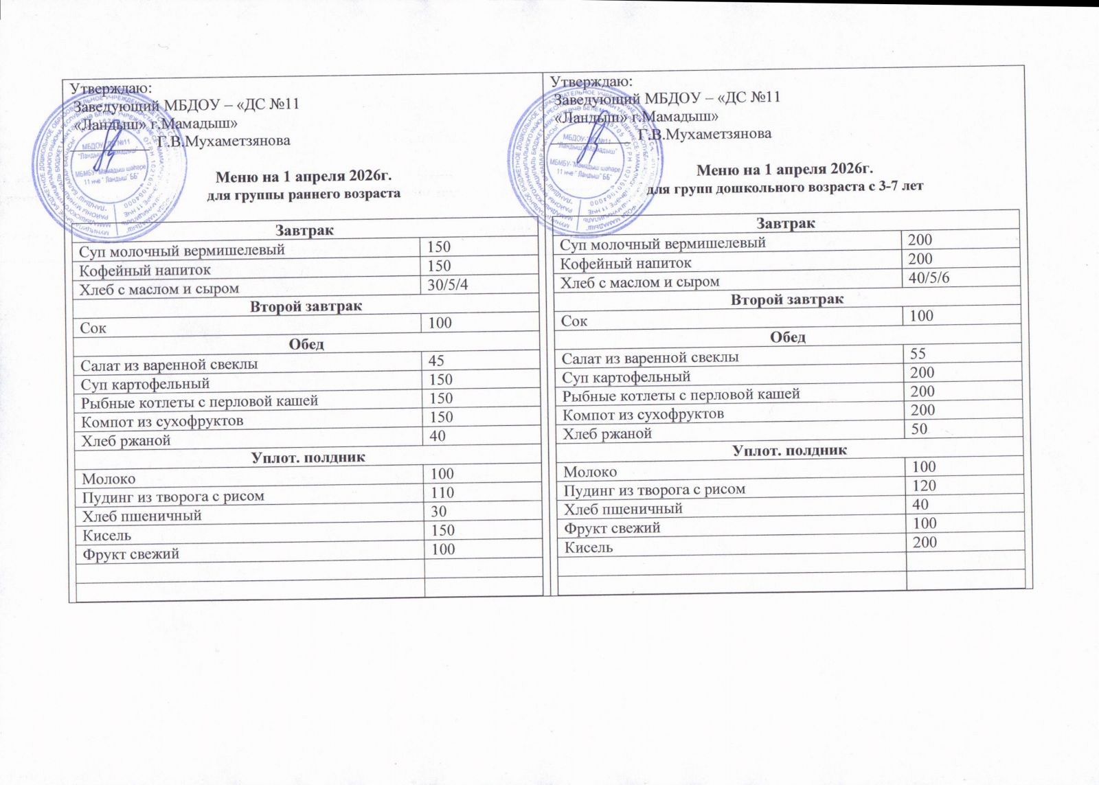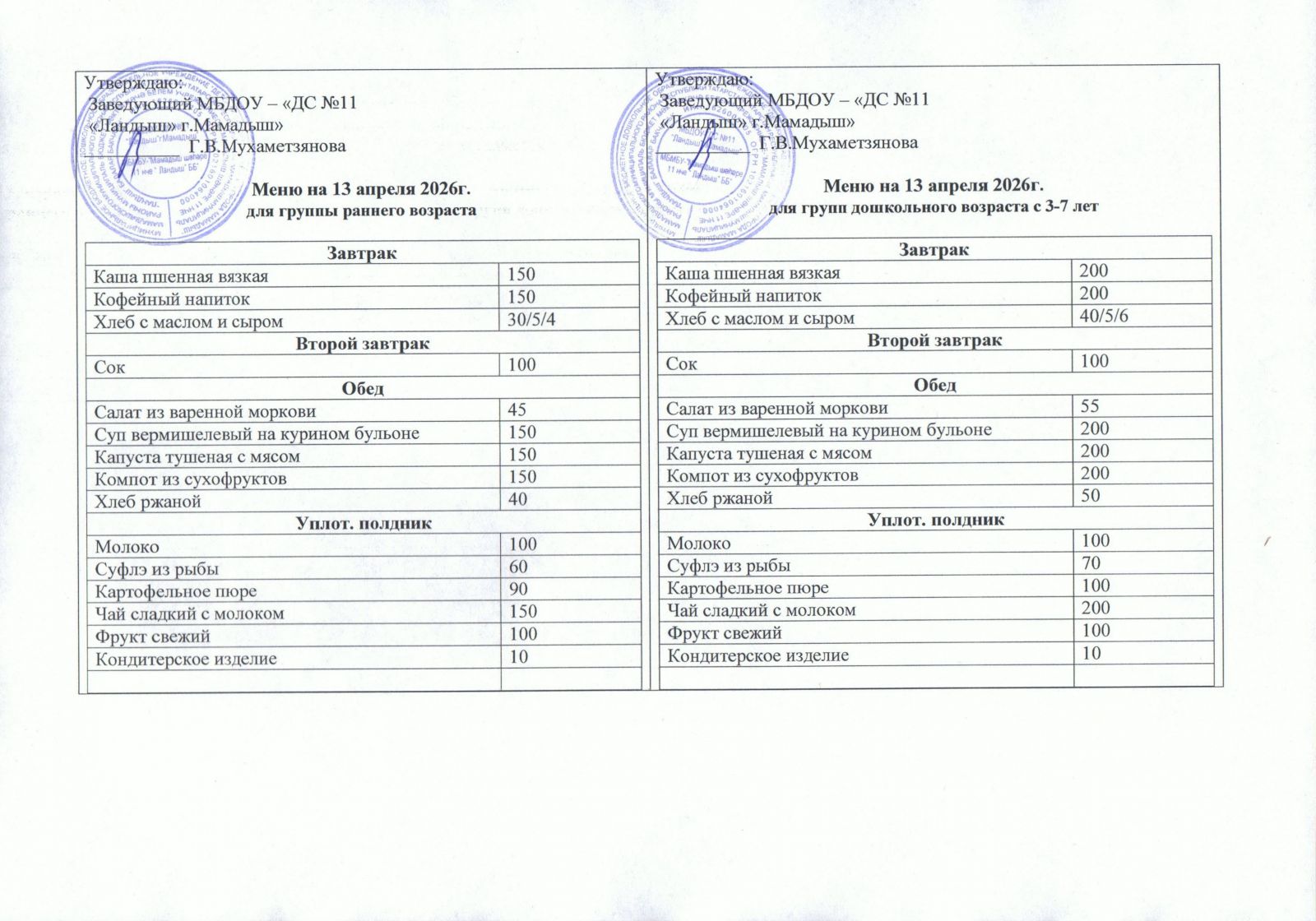 Примерное десятидневное меню для организации питания детей с 3 до 7 лет