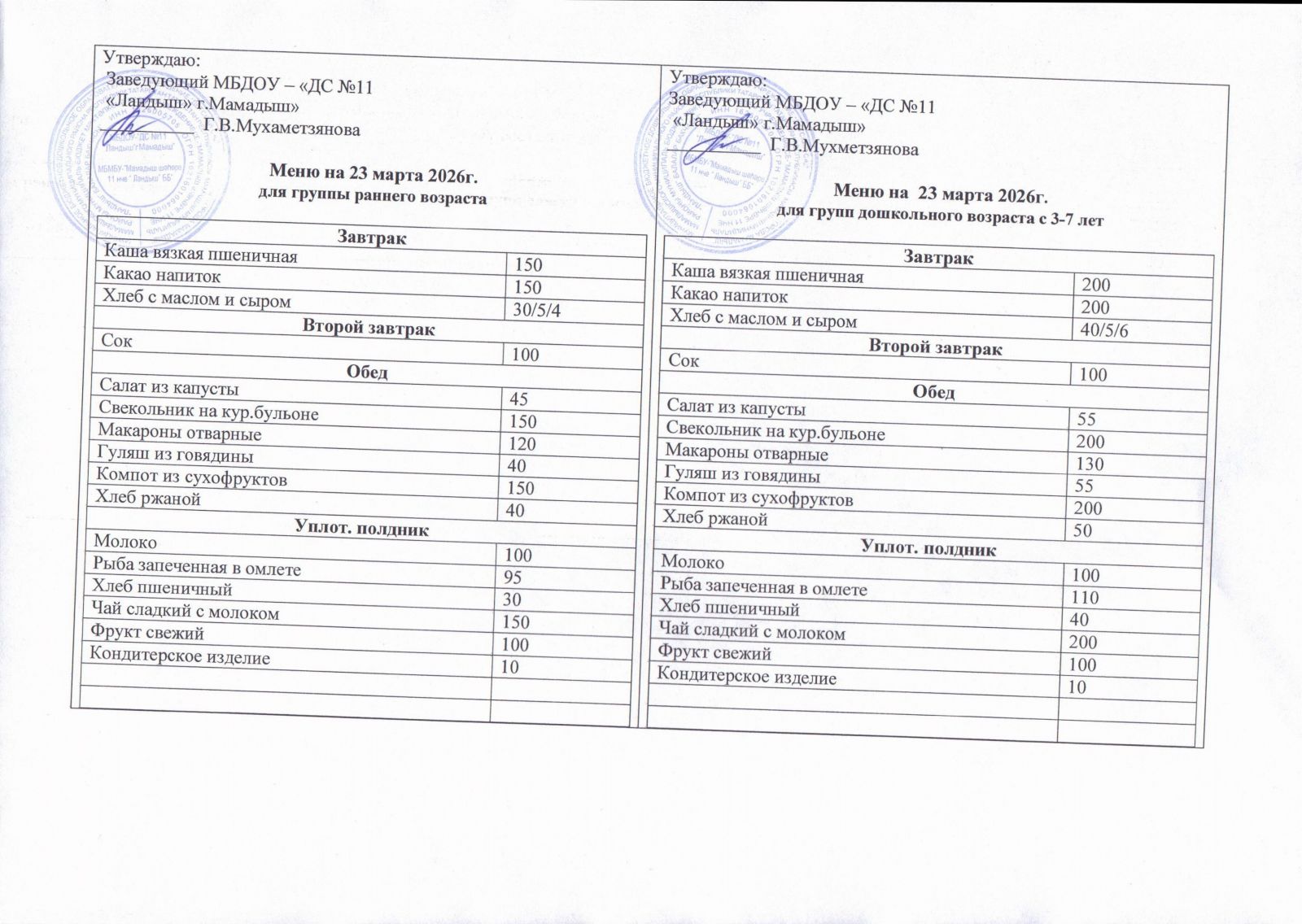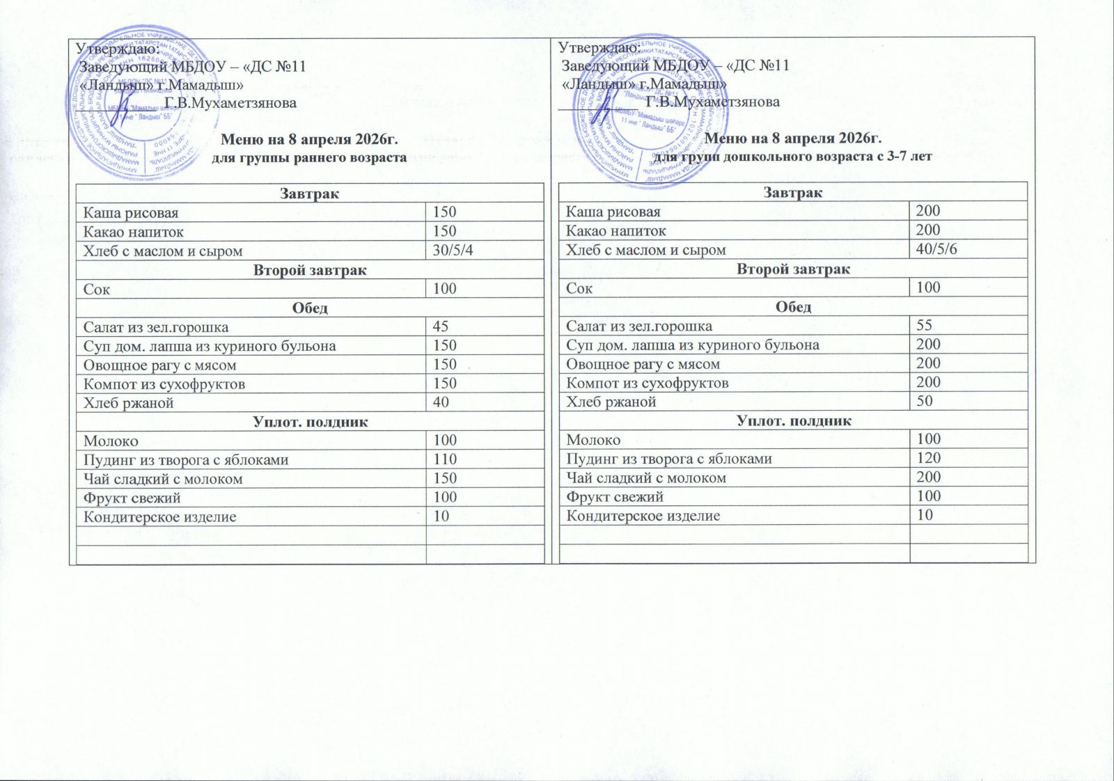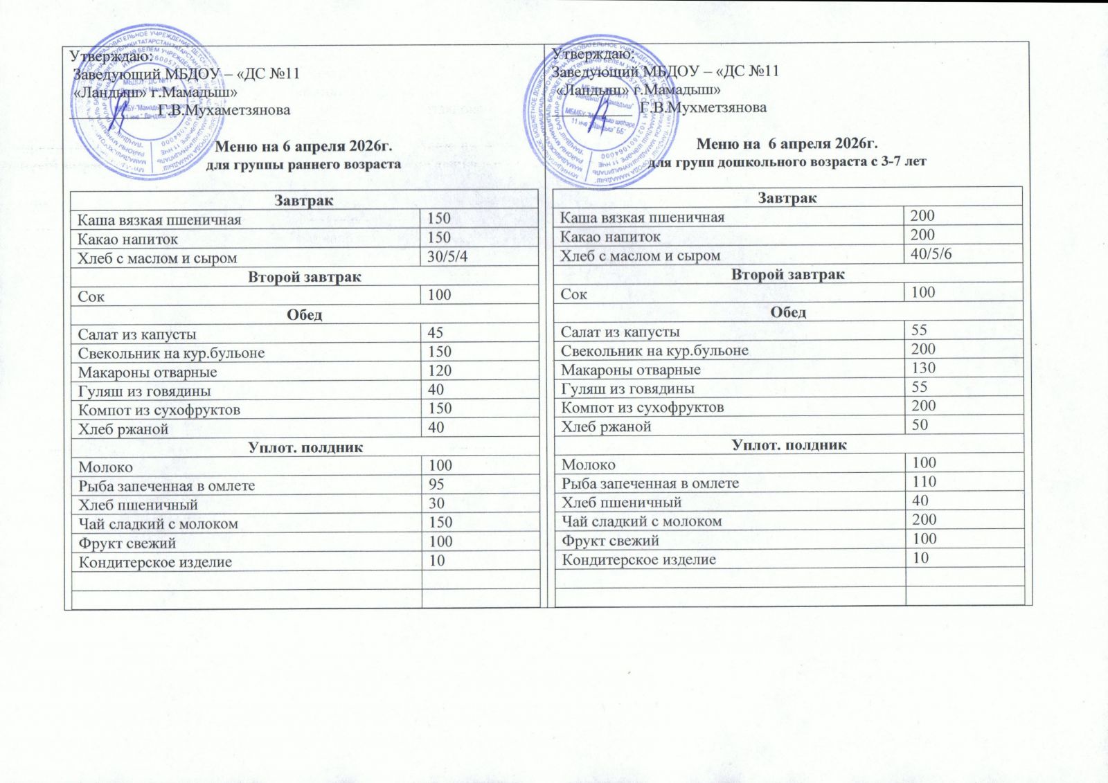 Примерное десятидневное меню для организации питания детей с 3 до 7 лет