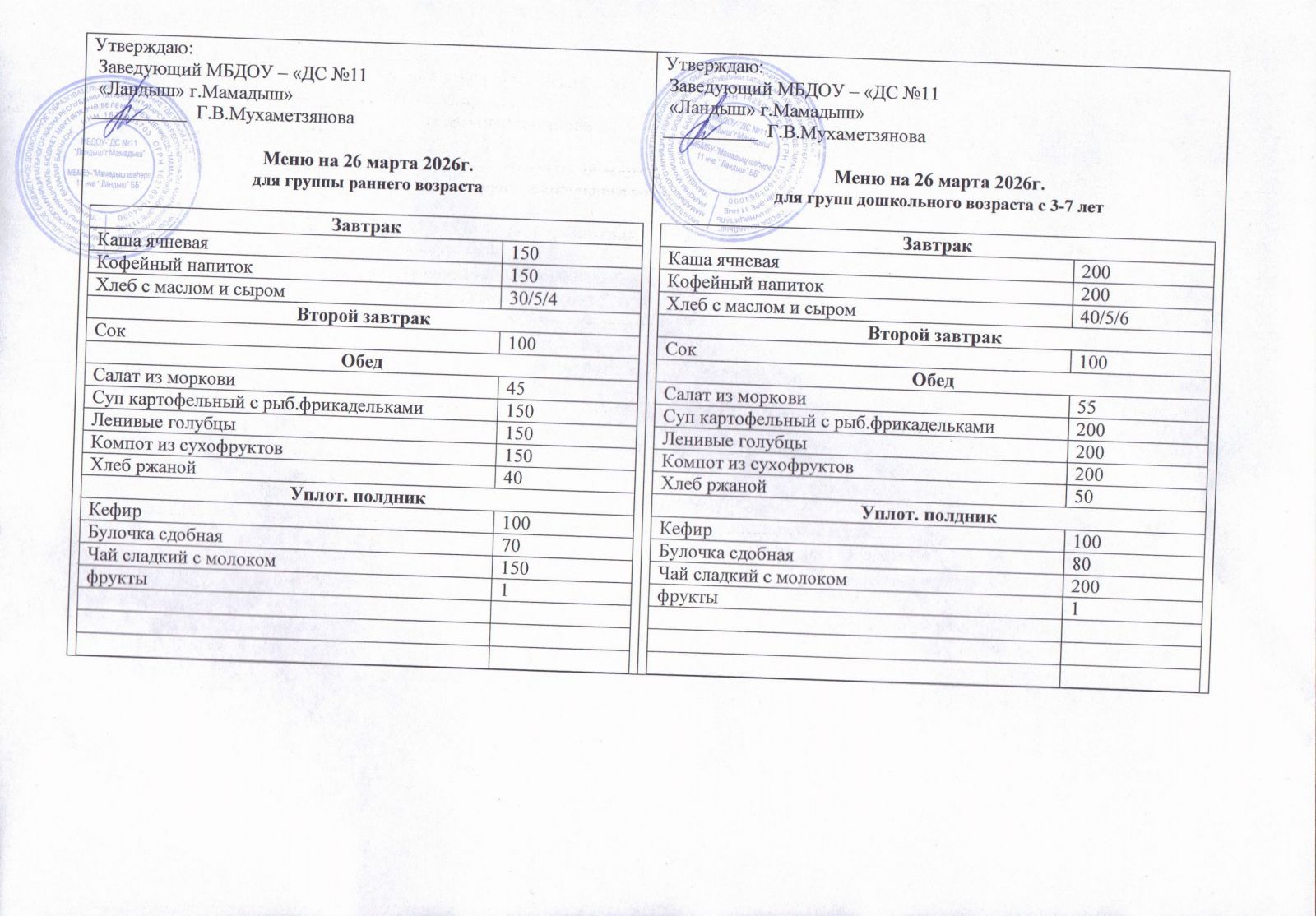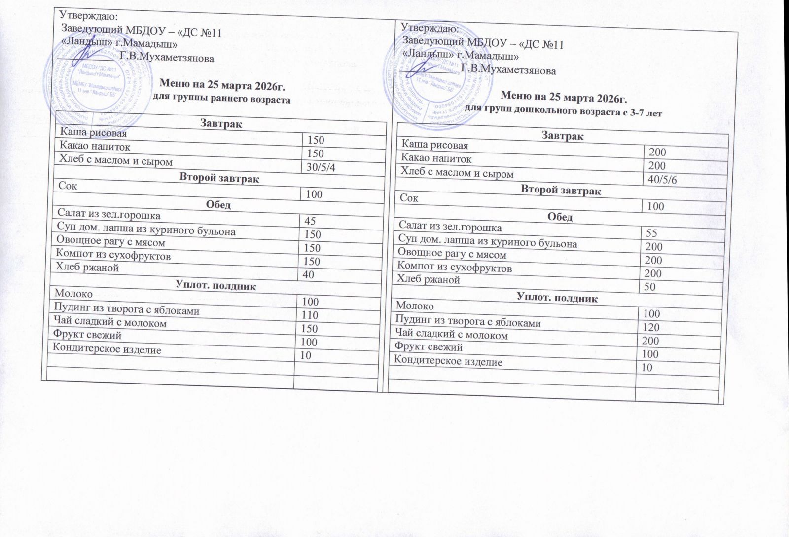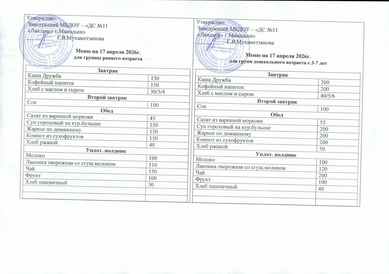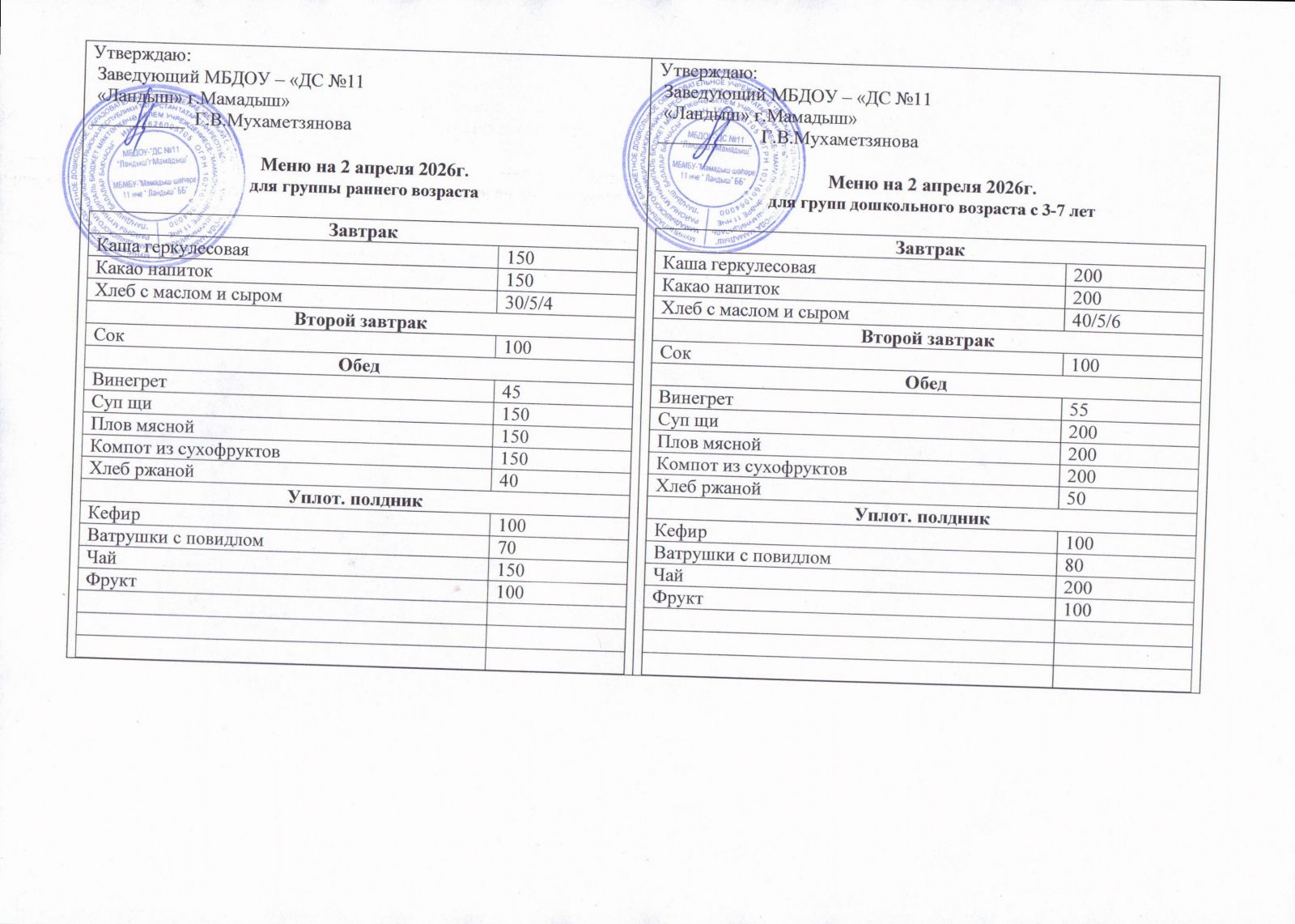 Примерное десятидневное меню для организации питания детей с 3 до 7 лет