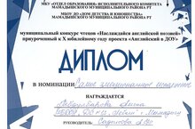 Участие в муниципалльном конкурсе чтецов "Наслаждайся английской поэзией" приуроченной к X юбилейному году проекта "Английский в ДОУ" Габдулбарова Аиша. 03.04.2026