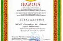 Коллектив ДОУ занял 2 место по итогам проведения смотра-конкурса по благоустройству учреждений муниципального района в номинации "Детские дошкольные учреждения г. Мамадыш" и награжден благодарственным письмом.