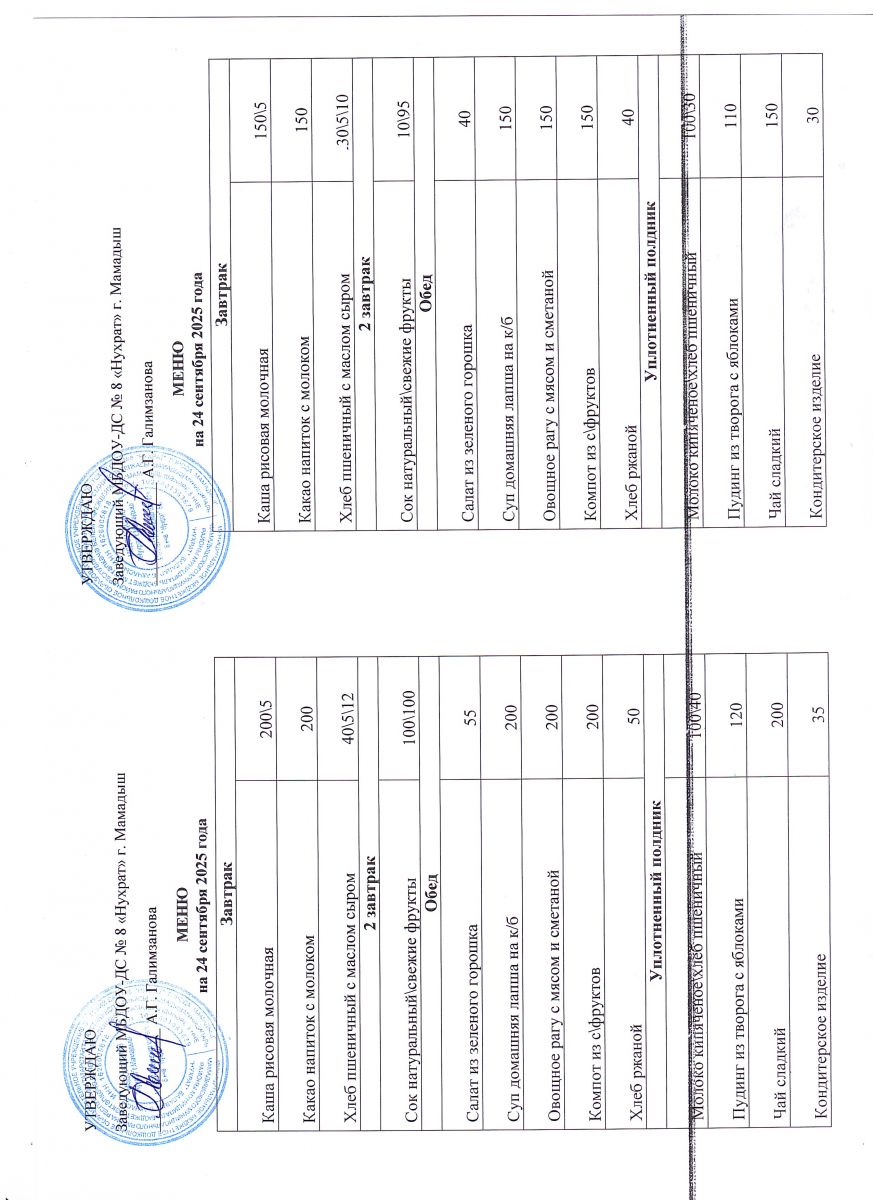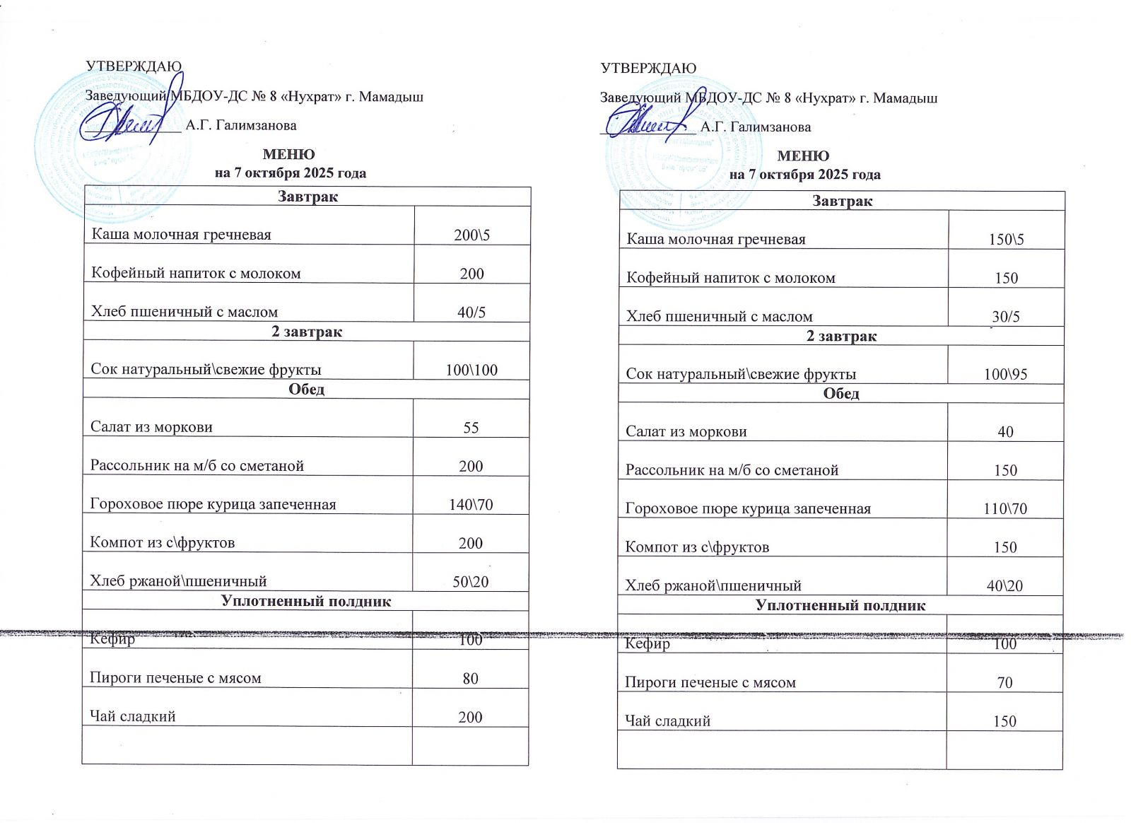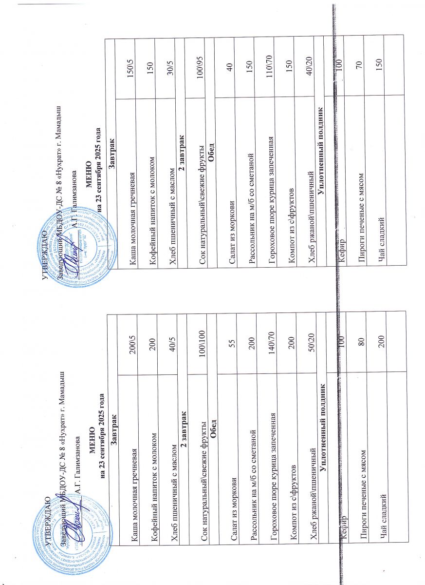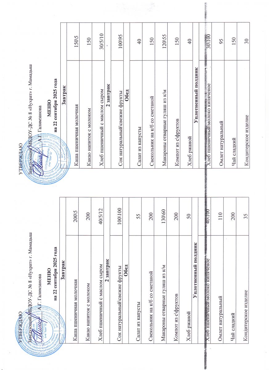 Примерное десятидневное меню для организации  питания детей с 3 до 7 лет