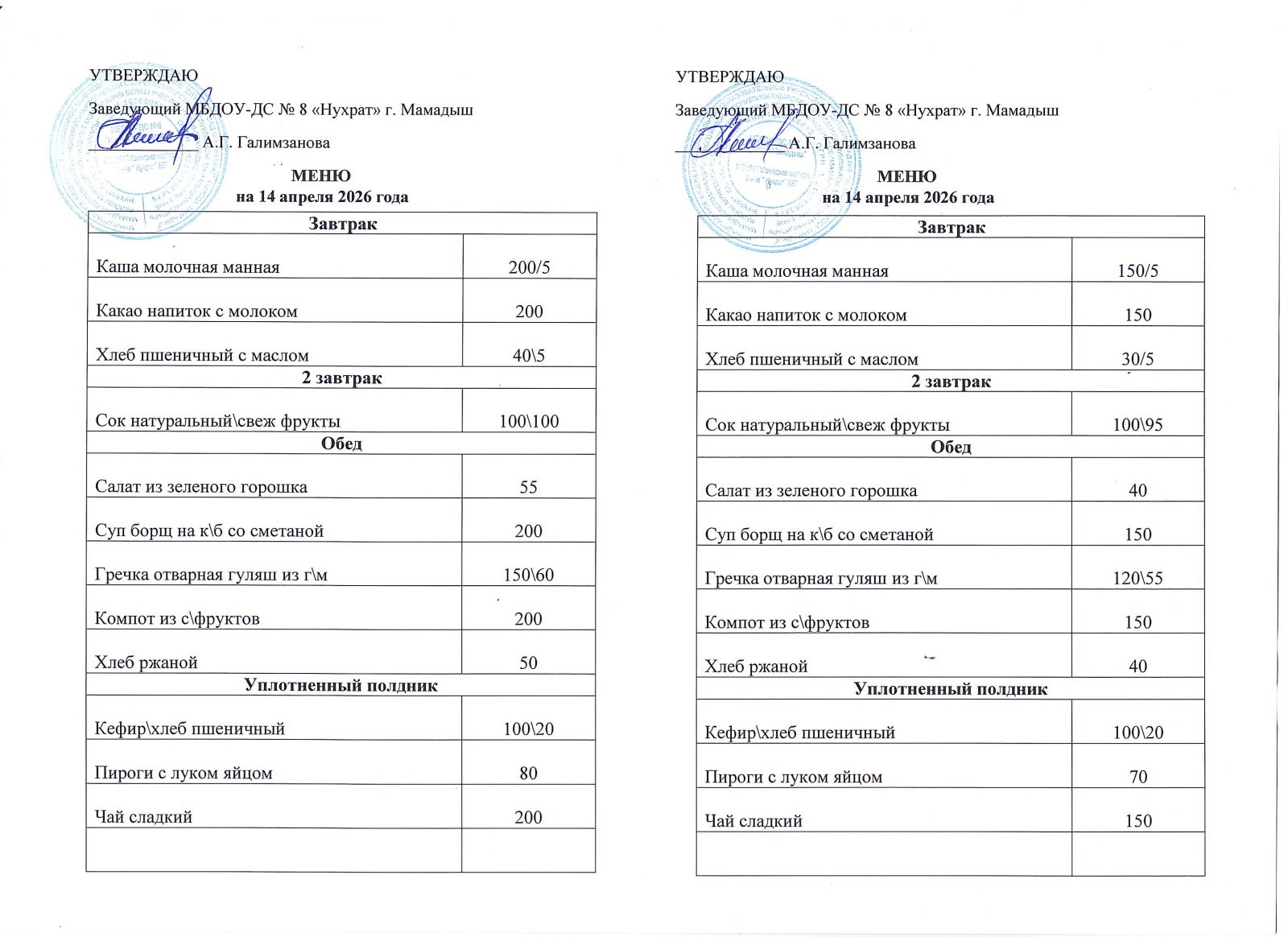 Меню 14.04.2026