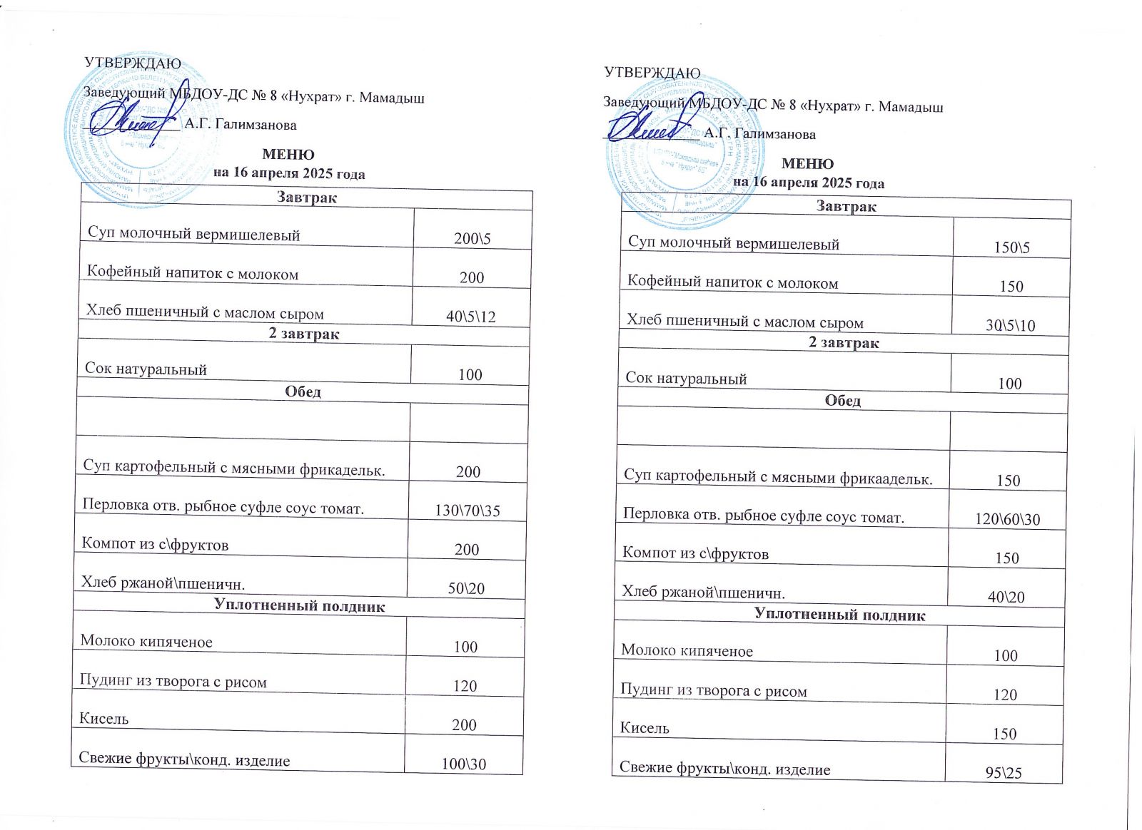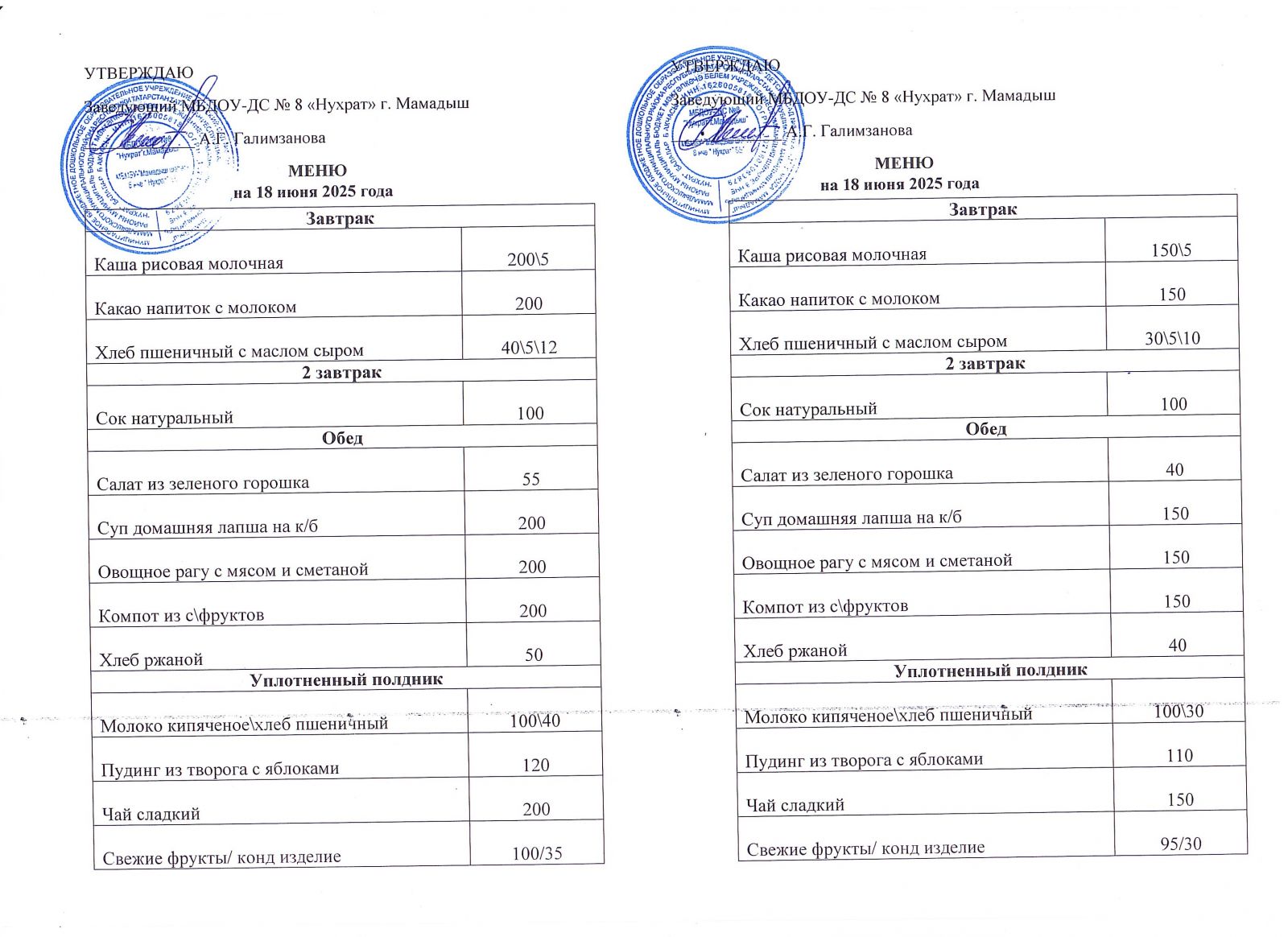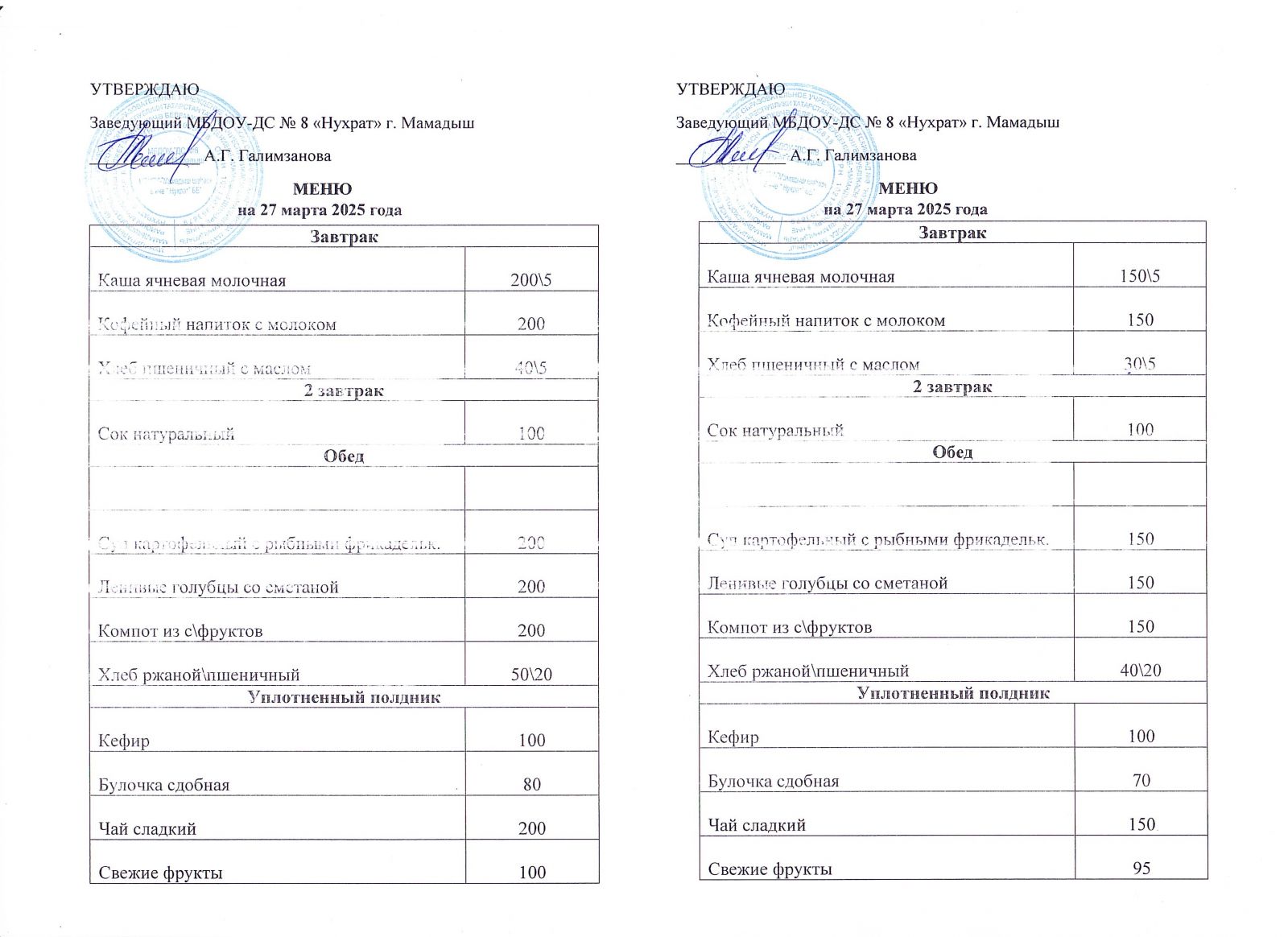 Примерное десятидневное меню для организации питания детей с 1,5 до 3 лет