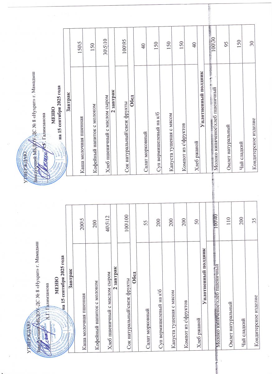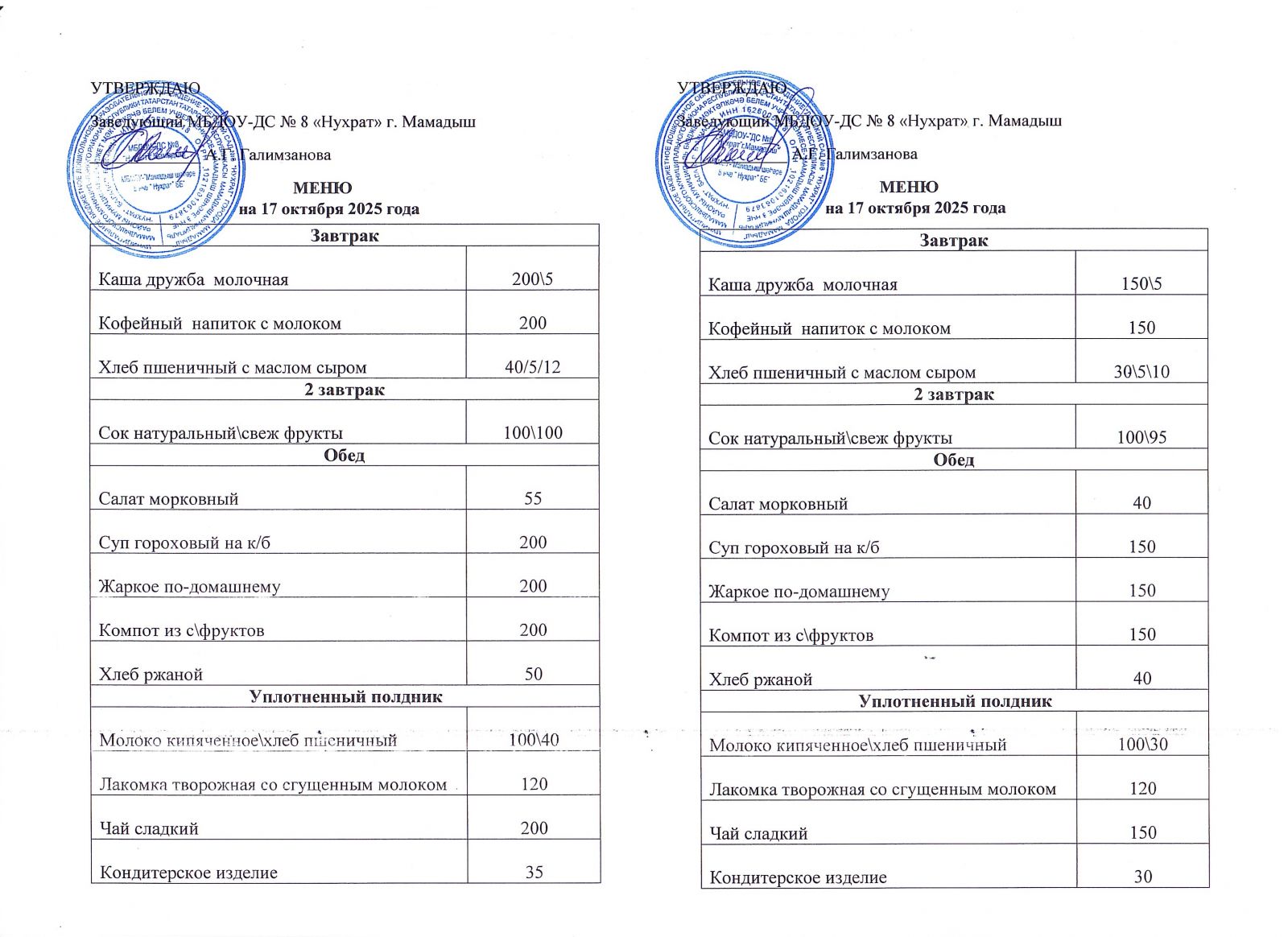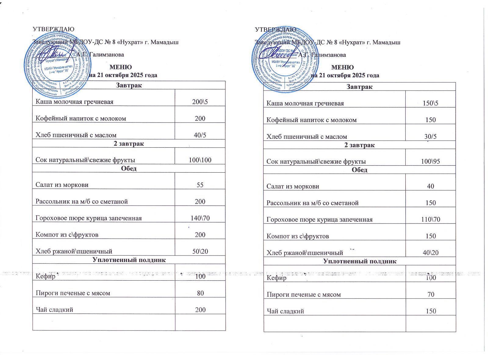 Примерное десятидневное меню для организации питания детей с 1,5 до 3 лет