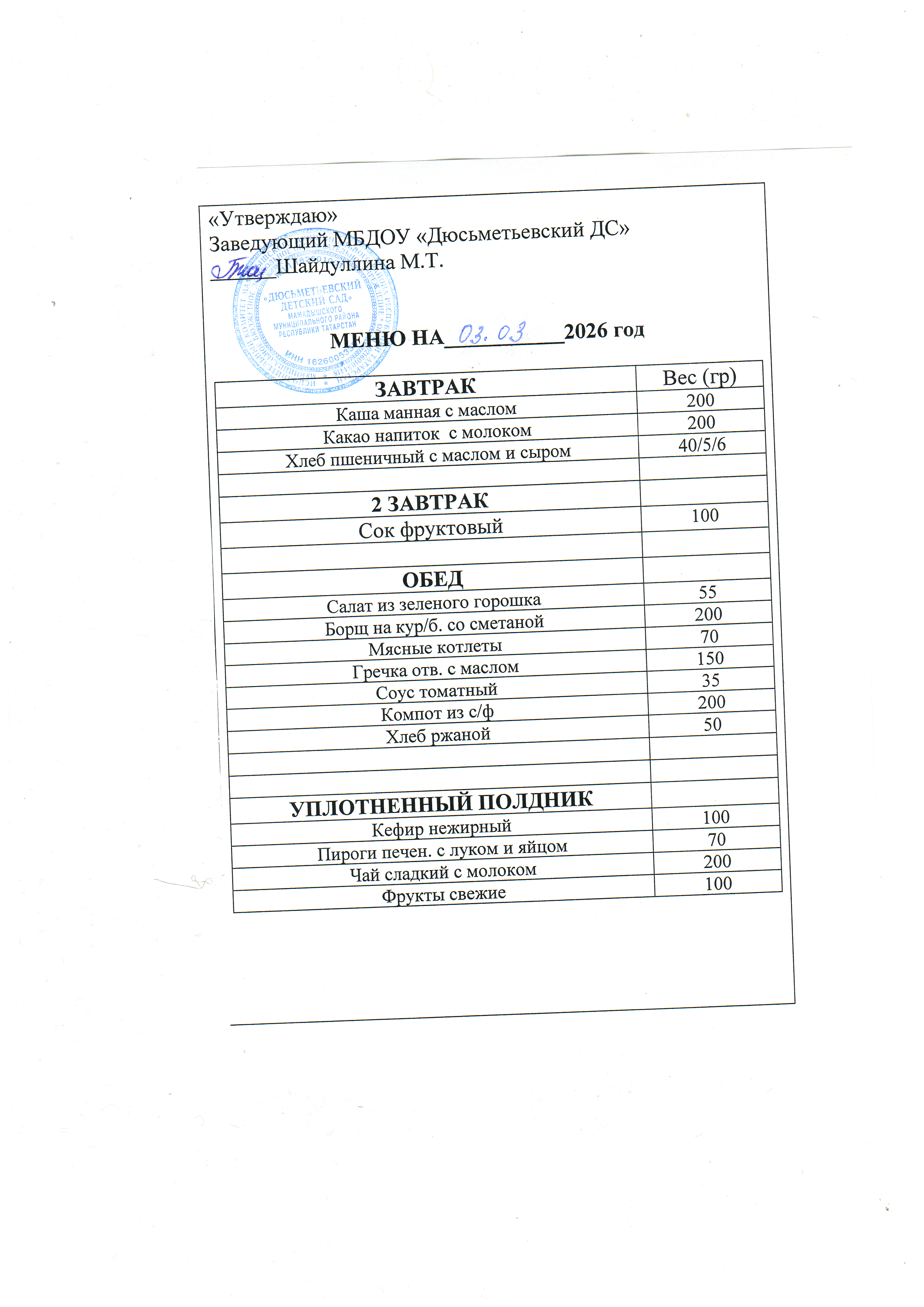 Меню на 03.03.26