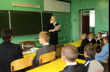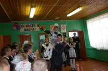 У нас учат: | 7 учителей. Язык обучения русский и марийский |