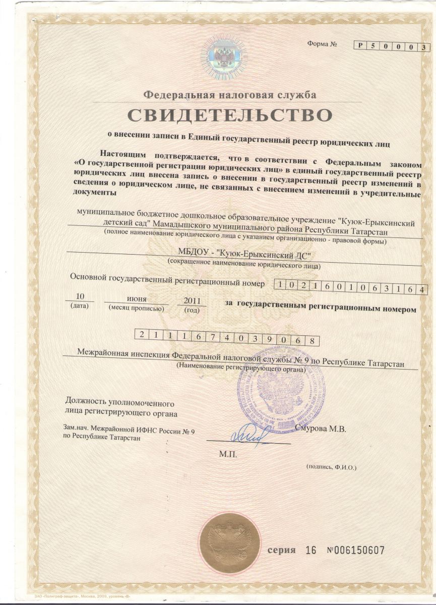 Муниципальное бюджетное дошкольное образовательное учреждение «Куюк-Ерыксинский детский сад» Мамадышского муниципального района РТ / ТР Мамадыш муниципаль районы муниципаль бюджет мәктәпкәчә белем учреждениясе "Көек-Ерыкса балалар бакчасы"