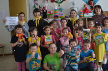 Укучылар , авылдашлар, укытучылар бергәләп элеге акциядә катнаштылар. Авылыбызның балалар бакчасына һәм өйдә белем алучы Хадыев Булатка бүләк иттеләр.