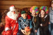 Сугыш ветераны Динмухаметов Галиәхмәт абыйны 9 нчы сыйныф укучылары Яңа ел белән котладылар. Кыш бабай үзенең бәйрәм күчтәнәчен тапшырды. Кызлар җырлар җырладылар, котлау сүзләре әйттеләр. Галиәхмәт абый балаларча шатланды.