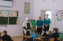 Башлангыч сыйныф укучылары Әлфинур апа һәм Зөбәрия апалар белән очрашуда катнаштылар. Алар укучыларга сугыш елларының ачысын аңлаттылар.