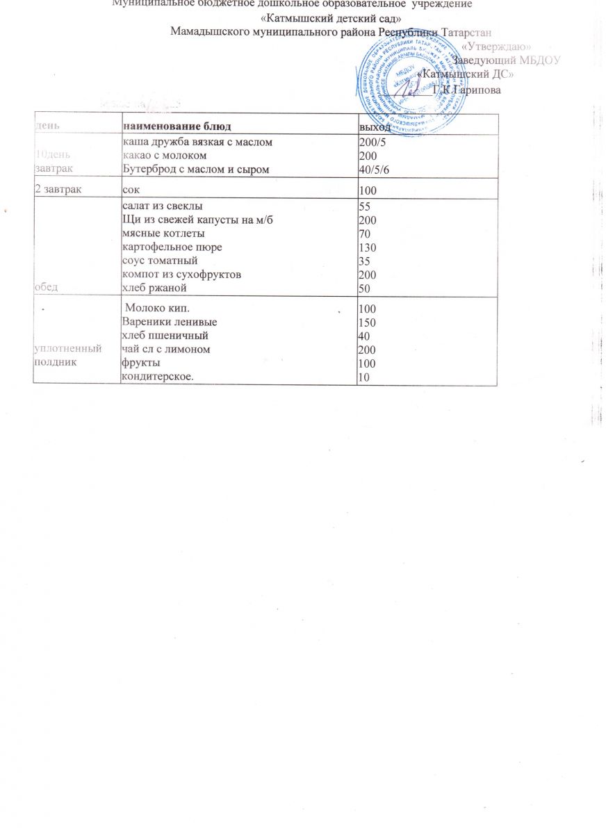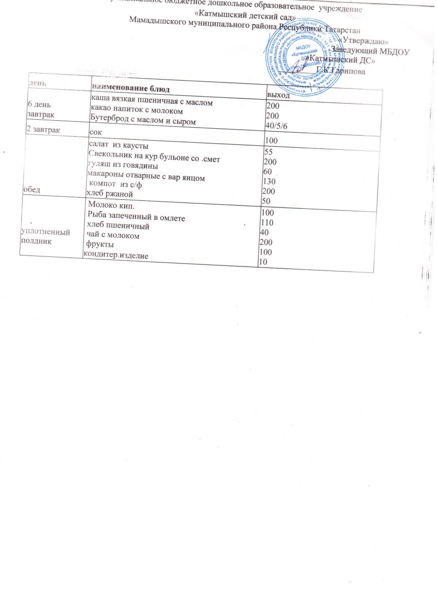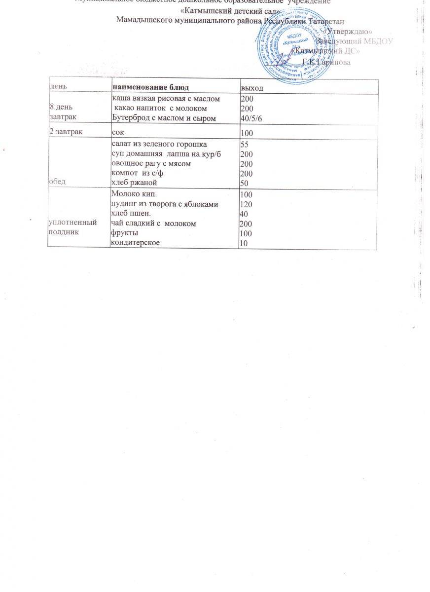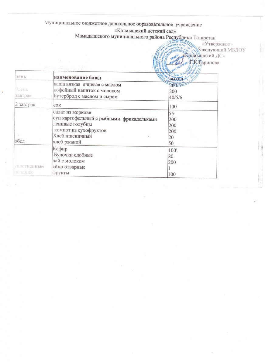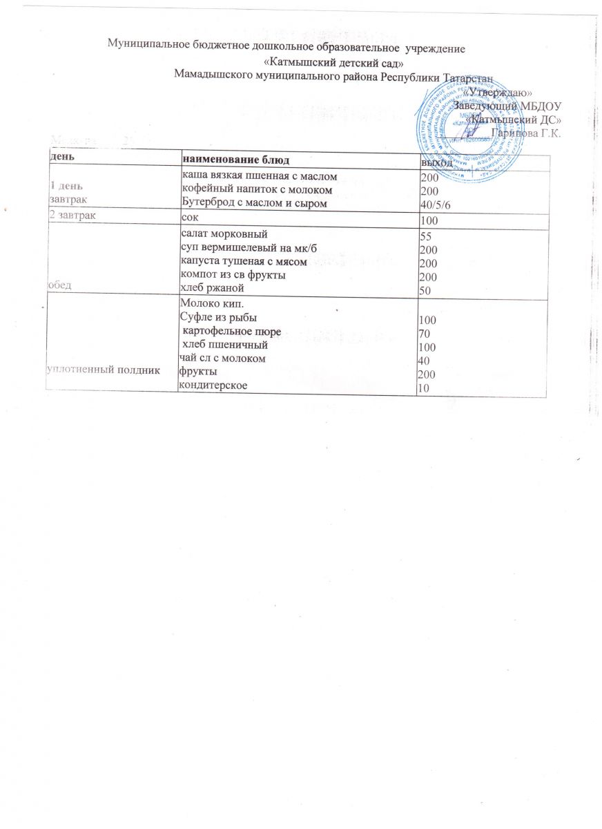 Муниципальное бюджетное дошкольное образовательное учреждение «Катмышский детский сад» Мамадышского муниципального района РТ