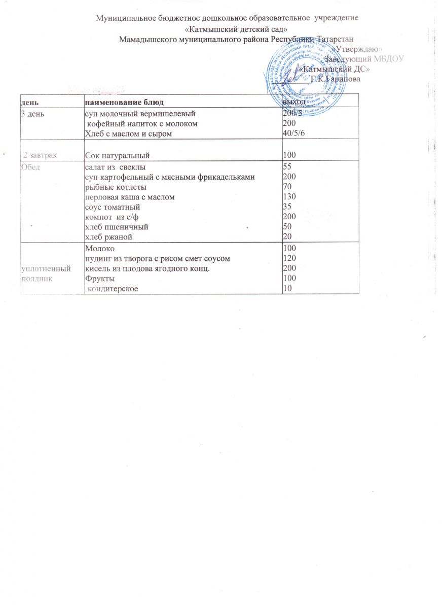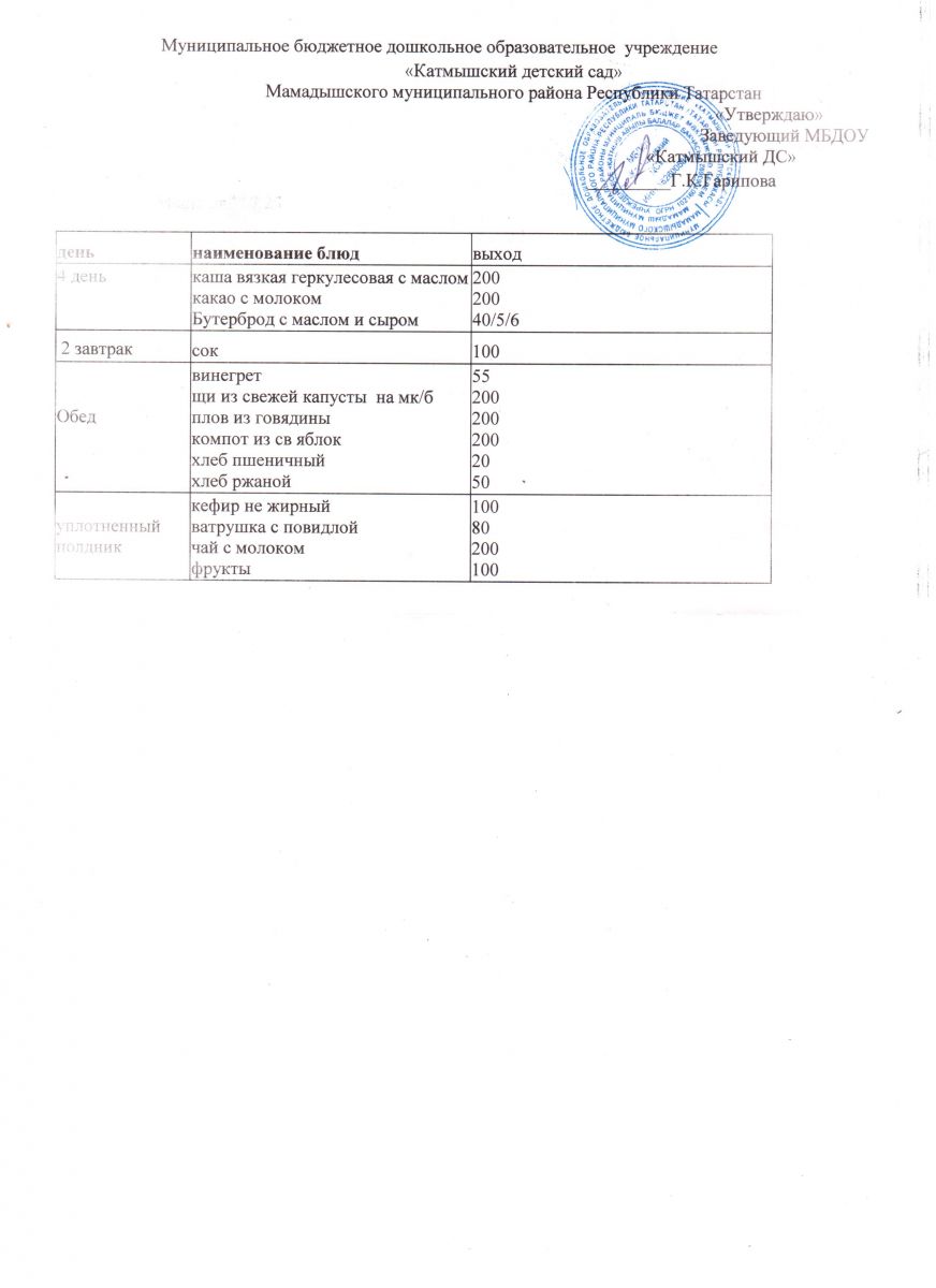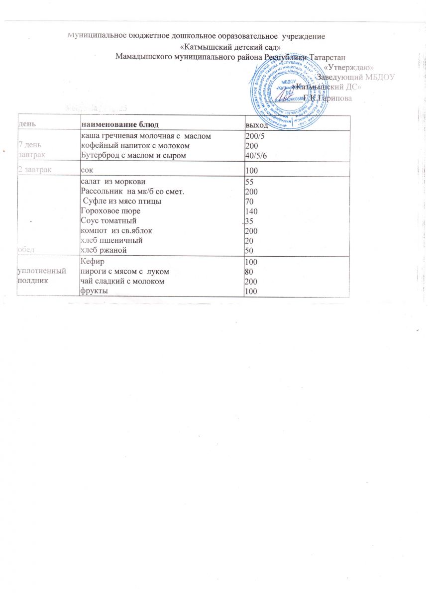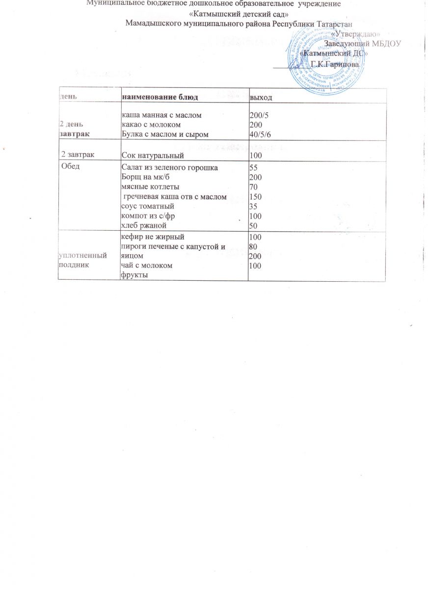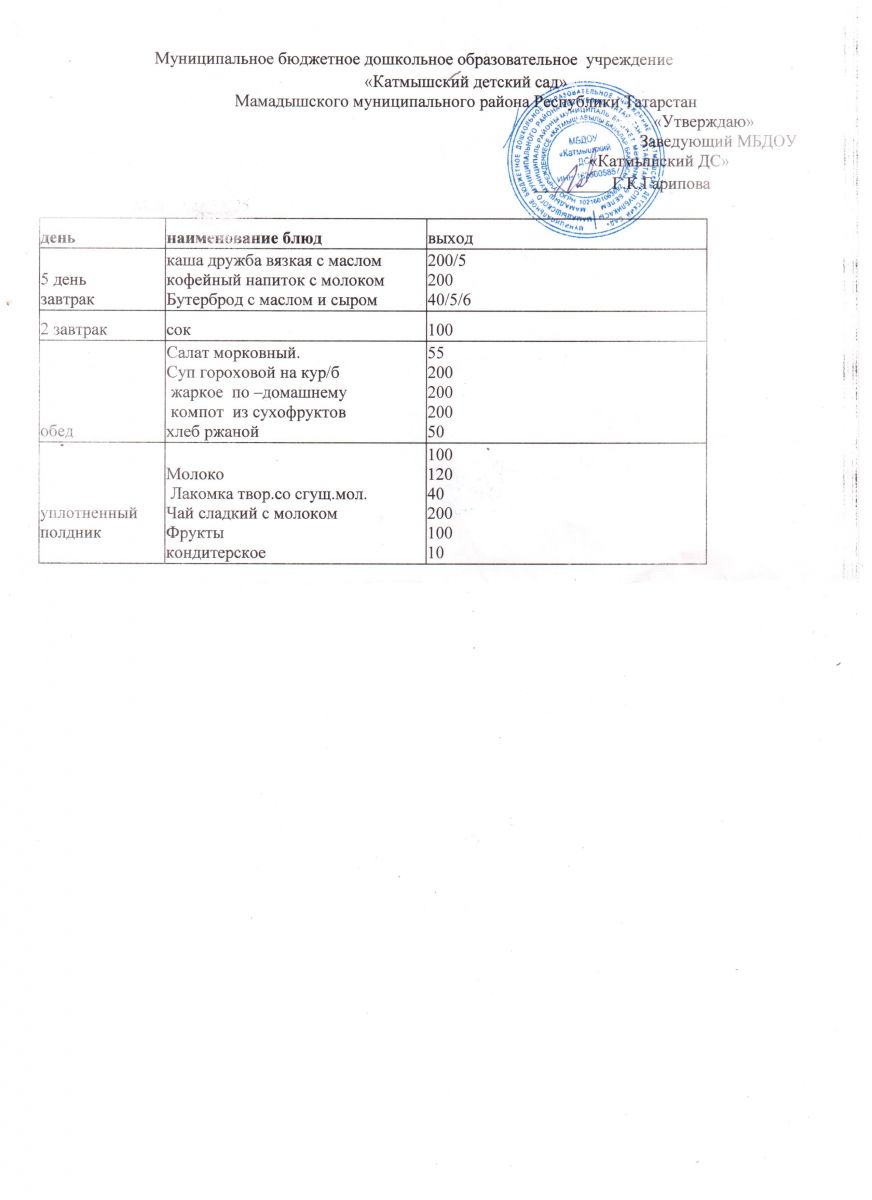 Муниципальное бюджетное дошкольное образовательное учреждение «Катмышский детский сад» Мамадышского муниципального района РТ