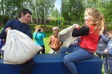 С милым рай и в шалаше. В нашем случае - в палатке. Ребята принимают участие в конкурсе на самую быструю установку палатки.