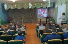 Сегодня в актовом зале учитель изо и музыки Тихонова Наталья Юрьевна провела внеклассное мероприятие, посвященное 80 - летию со дня рождения Зарипова Ильдара Касимовича.