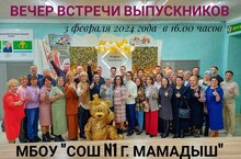 МБОУ "СОШ N 1 г. Мамадыш" приглашает Вас на вечер встречи, который состоится