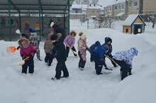 После снегопада начинается активная работа по уборке территории. Воспитанники охотно помогают в уборке снега на веранде и дорожках. Значение труда в природе для воспитания и развития детей велико: у детей формируются трудовые умения и навыки;