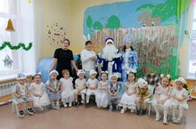 Дети встретили Снеговика, Снегурочку и Деда Мороза. Поиграли с ними в игры, потанцевали, спели песни и рассказали стихи. А в конце праздника Дедушка Мороз подарил подарки.