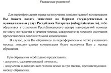 Для переоформления права получение дополнительной компенсации Вы можете подать заявление на портале государственных и муниципальных услуг Республики Татарстан (uslugi.tatarstan.ru), либо обратиться в отделение Республиканского центра материальной помощи по месту жительства в течение месяца, следующего за месяцем окончания предоставления дополнительной компенсации.