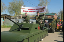 Бөек Җиңүнең 69 еллыгына багышланган тантаналы парадта, Түбән Ушмы урта мәктәбе остаханәсендә техник хезмәткәр Мубаракшин Ильсур ясаган “танк” колоннаның башында барды. 09.05.2014