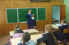 Организатор-преподаватель ОБЖ Гибадуллин И.Т., провёл открытый урок по ОБЖ. Учащимся 1- 11 класов он рассказал о правилах оказания первой медицинской помощи.