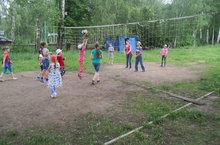 Лагерьда балалар күптөрле эшчәнлек белән шөгыльләнәләр: җырлыйлар, бииләр, спорт белән шөгыльләнәләр. Бүген алар озынлыкка сикерү буенча үз көчләрен сынадылар.