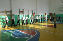 Сегодня в школе в рамках месячника оборонно-массовой работы провели смотр строевой песни. Ребята средних и старших классов показали умение построения и перестроения команд, умение ходить строем и исполнили строевые песни. Затем прошли соревнования по военной подготовке. Первое место заняла команда 11 класса.